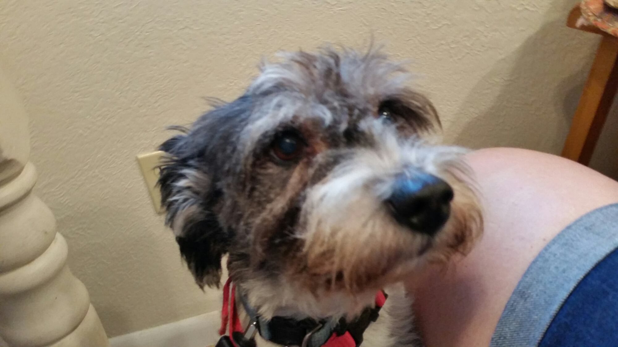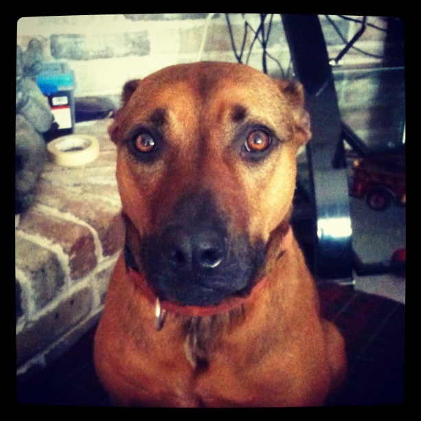 Here is Maximus with his very serious dog face. I love all the different dog eyes that he makes. When Maximus was a puppy my son adopted him. However, my son did not consider apartment life and his hectic work schedule so Maximus came to live with us. At first we were not too excited about this but Maximus has wormed himself into our affections and we love him very much.
