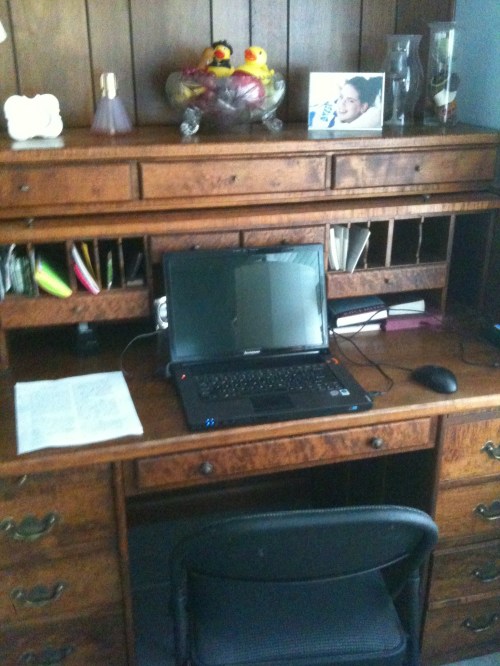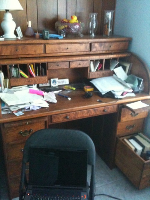 Then I spent some time cleaning off my roll top desk.  This is the desk that I have my laptop.  I use this mainly in the morning when Marc is still asleep.
