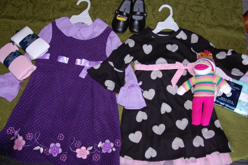 The little dresses are for a 3 year old I am sponsoring for Christmas.  To complete the outfits I needed to get some tights, shoes and some underwear.  I was disappointed that I could not find these at Kohl’s so I headed over to Wal-mart.  I was able to pick up the rest of the items there along with these really cute monkey dolls.  I was so taken with these dolls that I purchased three of them.  I am giving one to the little girl.
