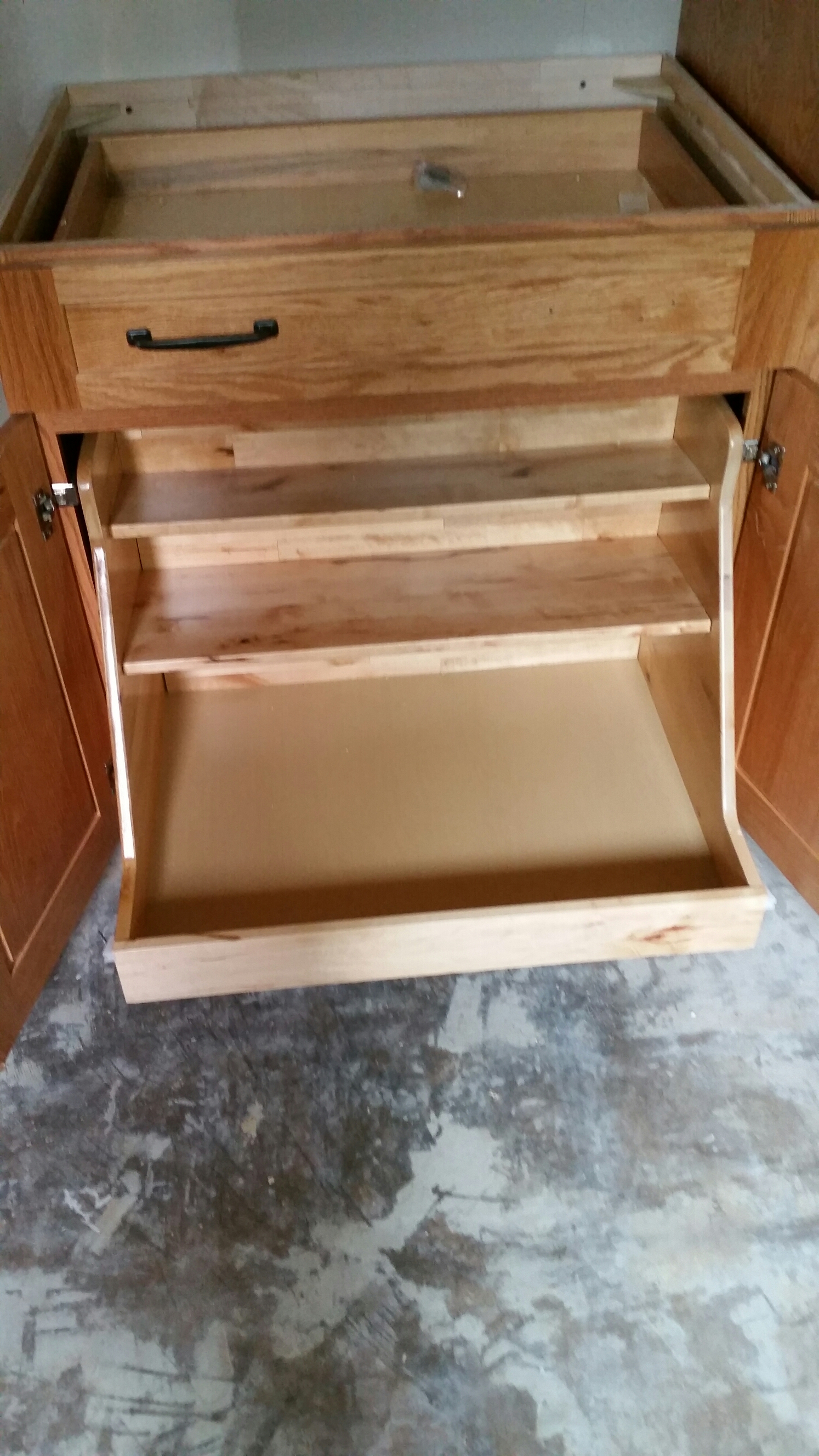 The kitchen is 90-95% complete. We are just waiting for the electrian and plumber to connect the water and electric back up. And we are